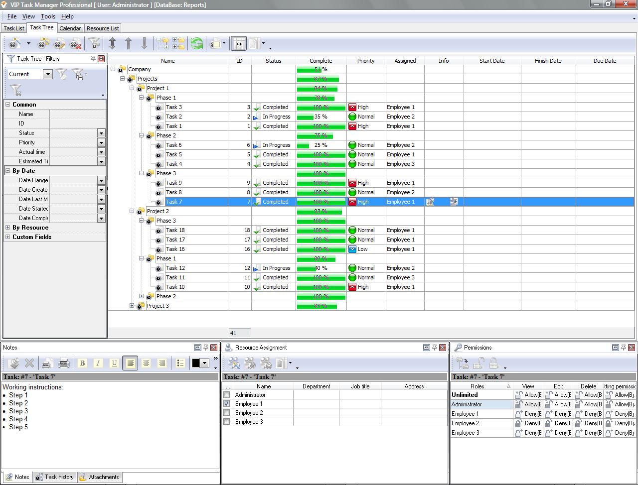 Task Tree mode actions (to organize and control employees):