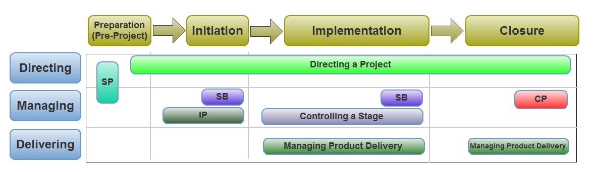 The PRINCE2 method is implemented under 8 high-level processes, including: