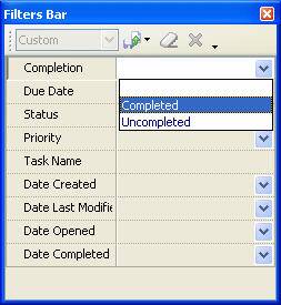"Filter by Completion" allows you to display only completed or vice versa uncompleted tasks.