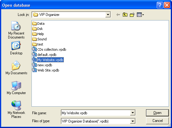 VIP Organizer: Open Database |
