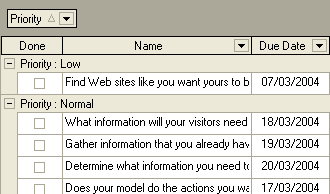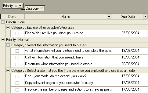 A unique feature of the program is the possibility to perform multi-level grouping of tasks. Select Group By Box from the content menu of the task list heading.