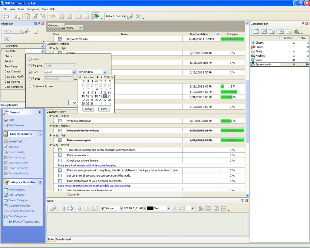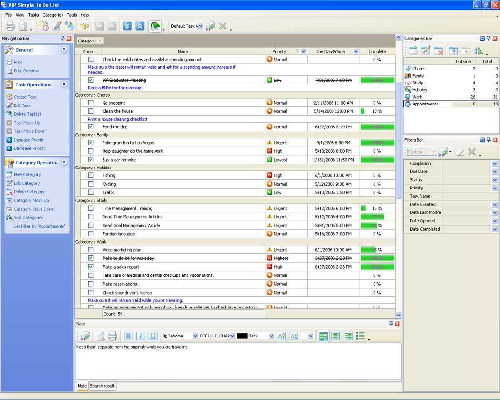For tracking tasks progress VIP Simple To Do List offers the following tools: ‘Done’, Complete %, Status and Info columns where you can define and track status of tasks.