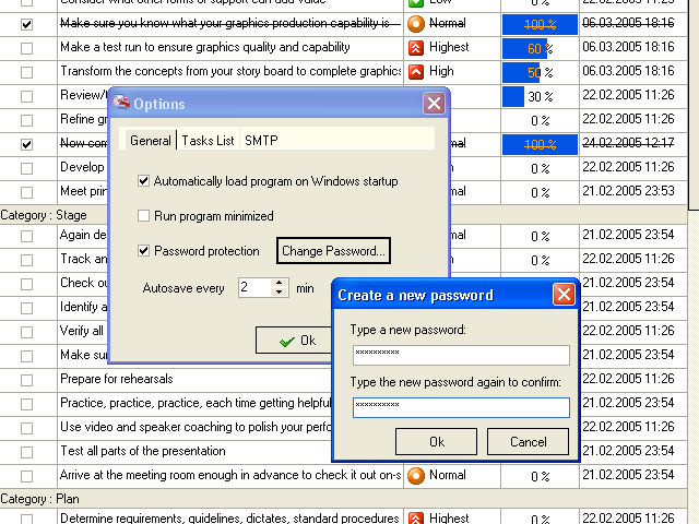 To protect data of your To Do List from unauthorized access you can set a password which will be asked each time the database is opened.
