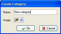 2. In the Create Category dialogue box that appears, enter the chosen category name and select a theme icon for using with this category.