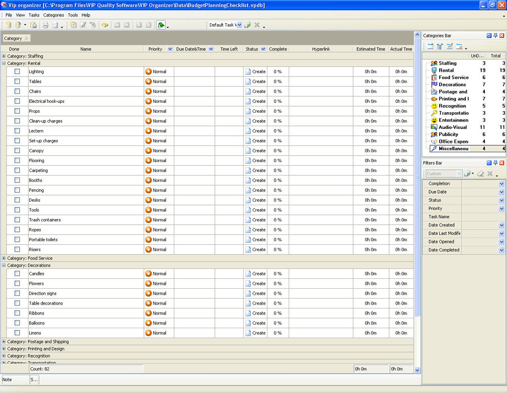 Budget Planning checklist is a 'to do list' for you to evaluate the expenses you may have while preparing to a certain event. Use this checklist to have a clear picture of the budget you will have to spend.