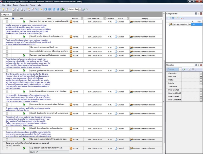 This customer retention checklist is designed for company owners and managers to give them a set of tips, which, if realized, can ensure weighty growth of sales through realizing hidden potential of retained customers, making good relations with them, winning their loyalty, along with decreasing the overall number of customer defections