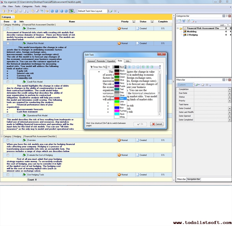 This Financial Risk Assessment Checklist is designed to assist executives and finance managers in evaluating potential risks affecting their business organizations. The checklist describes three risk models and specifies steps for risk hedging.