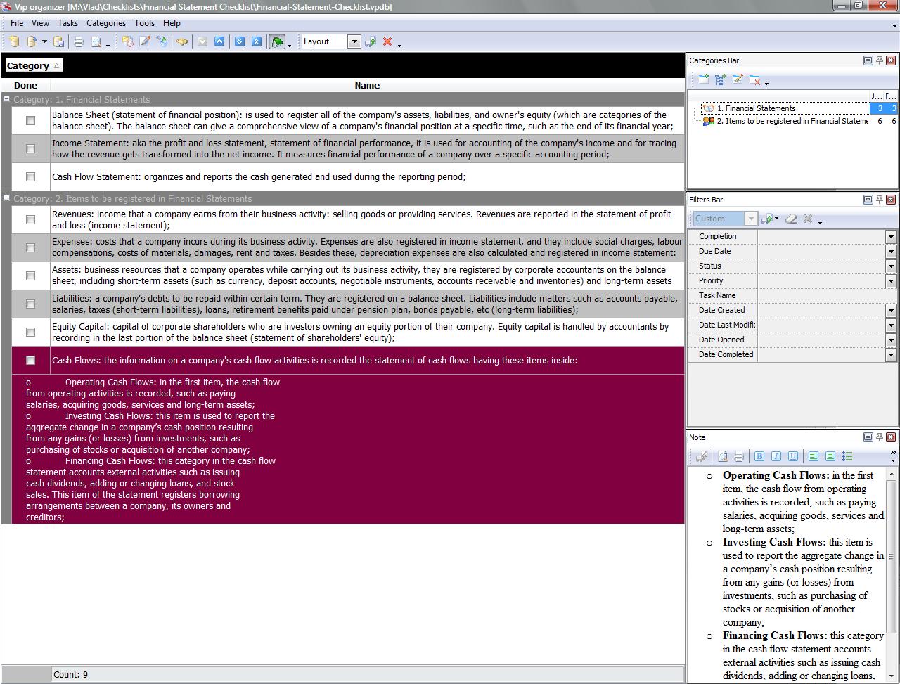 This Financial Statement Checklist will be helpful to all those who would like to learn what kind of accounting documents they may need in their business activity to report their regular financial operations, incomes and costs.