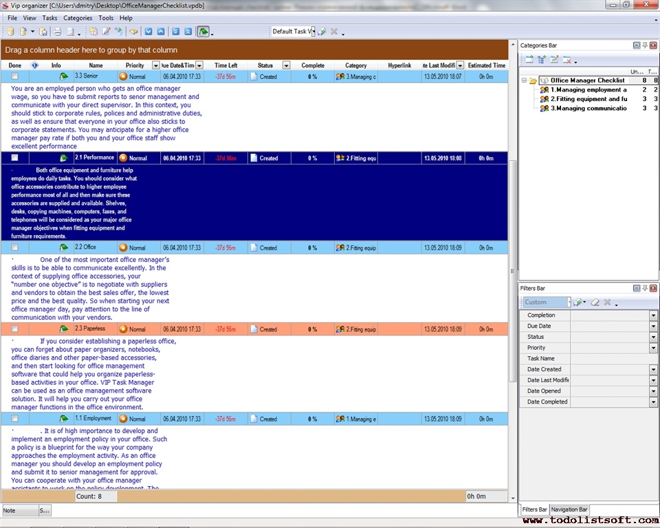 In order to be a successful office manager who really cares for establishing adequate office activities, you should adhere to some basic office manager manuals and guidelines. Here is the office manager checklist that covers six areas you should keep in mind to achieve success in organizing your office work.