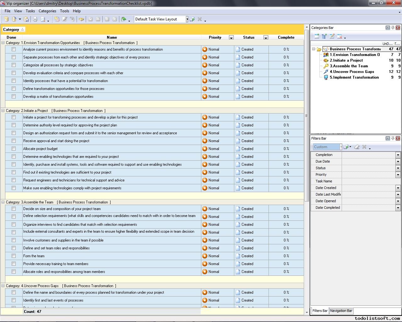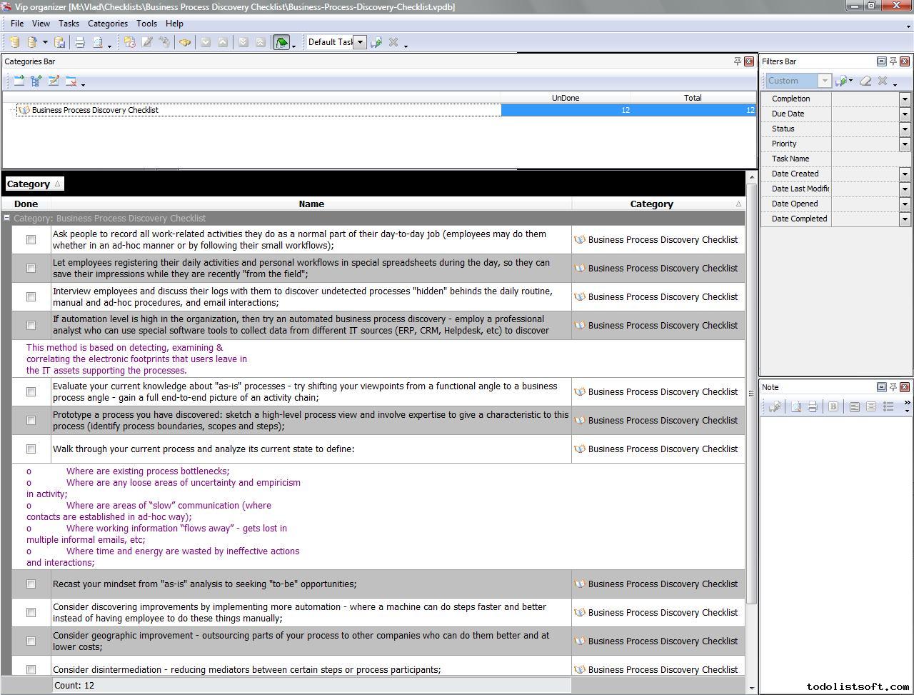 Business Process Discovery Checklist is composed to support the business managers who wish to clean their existing processes from any unregulated hidden workflows, or to optimize and formalize any processes which are not documented yet. Business Process Discovery Checklist
