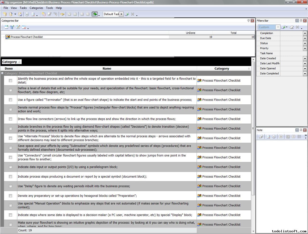 Business Process Flowchart Checklist is made for enterprise executives who wish to schematize their business processes to obtain their vivid representations. With an aid of this checklist you can study the major flowchart shapes and how they should be used to represent your process. Business Process Flowchart Checklist