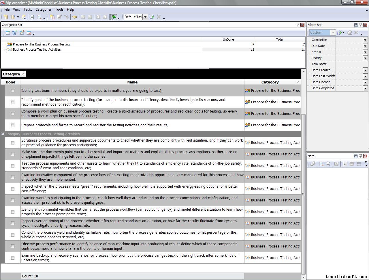 Business Process Testing Checklist is composed for business managers who seek to examine their processes to make sure they are effective and efficient. With a help of this checklist you can manage your process testing procedures to inspect manpower, equipment, etc. Business Process Testing Checklist
