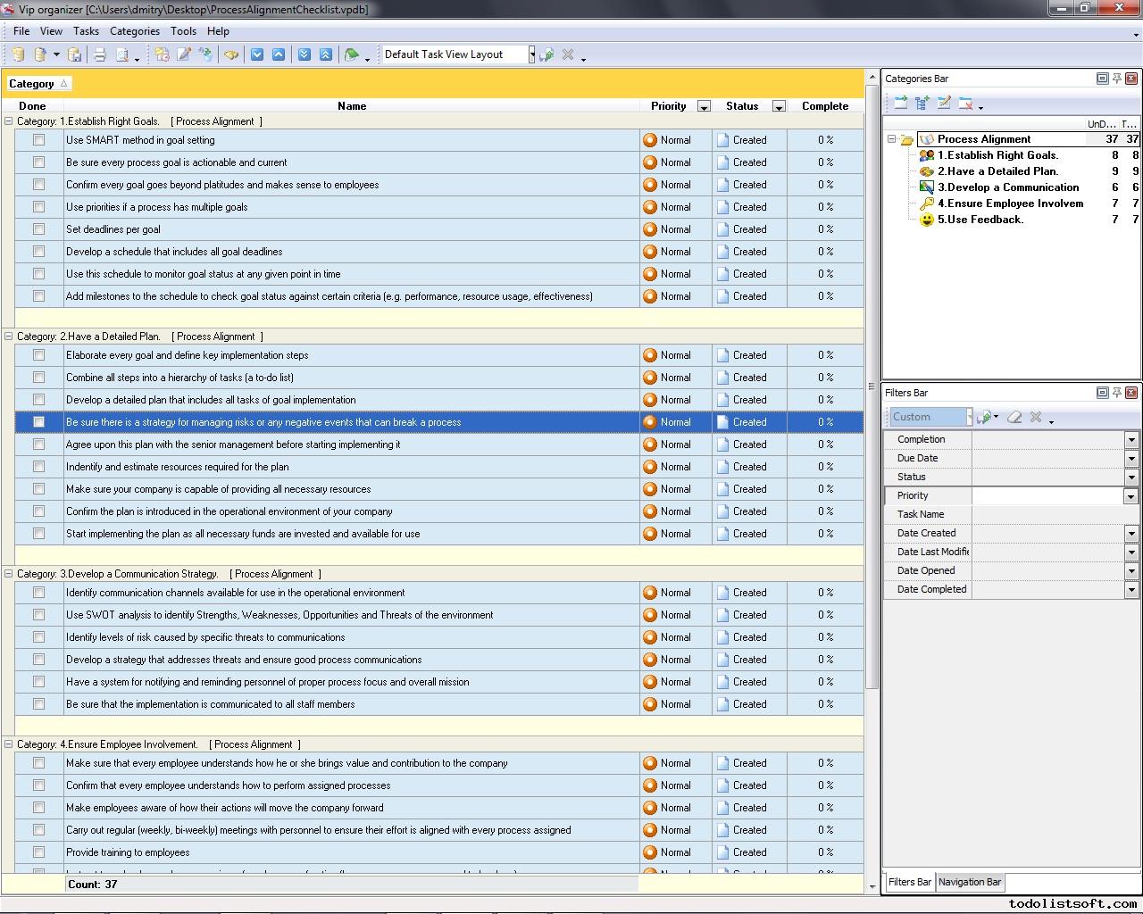 Aligning a process means systematically arranging the process’s goals with a common purpose or mission. An aligned process always contributes to overall success of high-level objectives. This Process Alignment Checklist explains how to make business processes aligned with strategic goals. Process Alignment Checklist