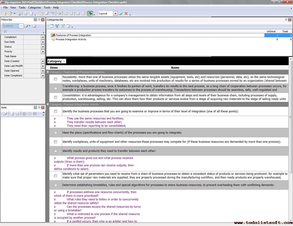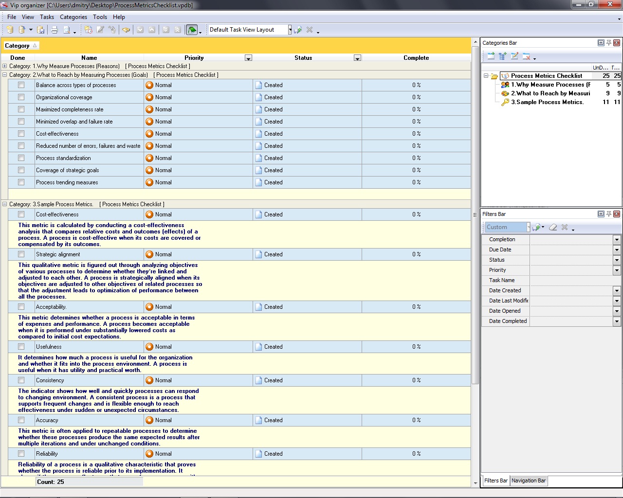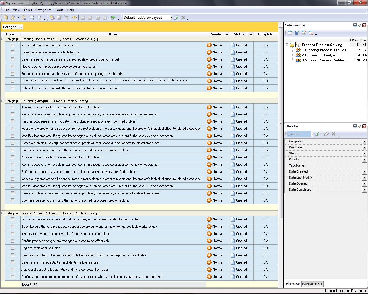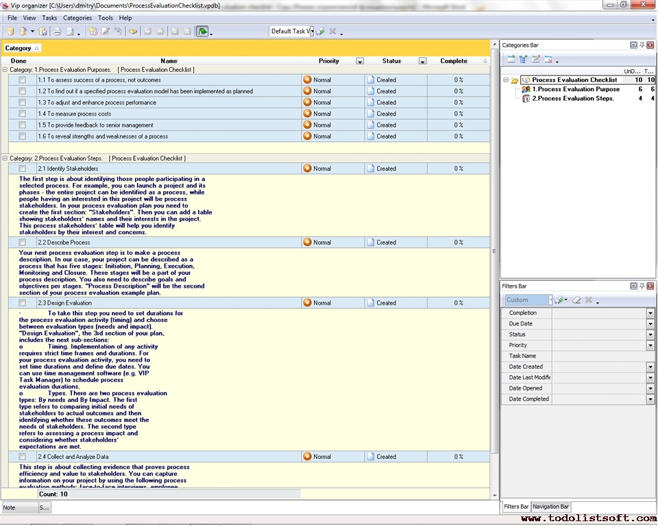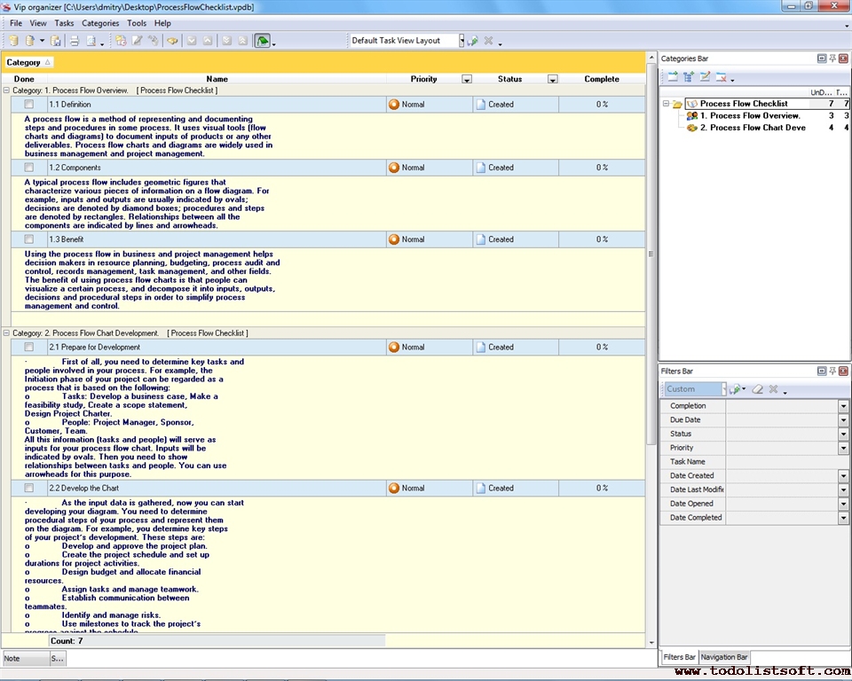 This Process Workflow Checklist describes three steps for performing a typical process workflow. It will be helpful for various specialists involved in process planning and management. The checklist can be uploaded into VIP Organizer which is a task management program. Process Workflow Checklist