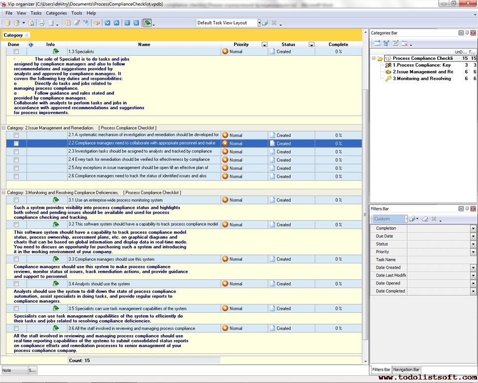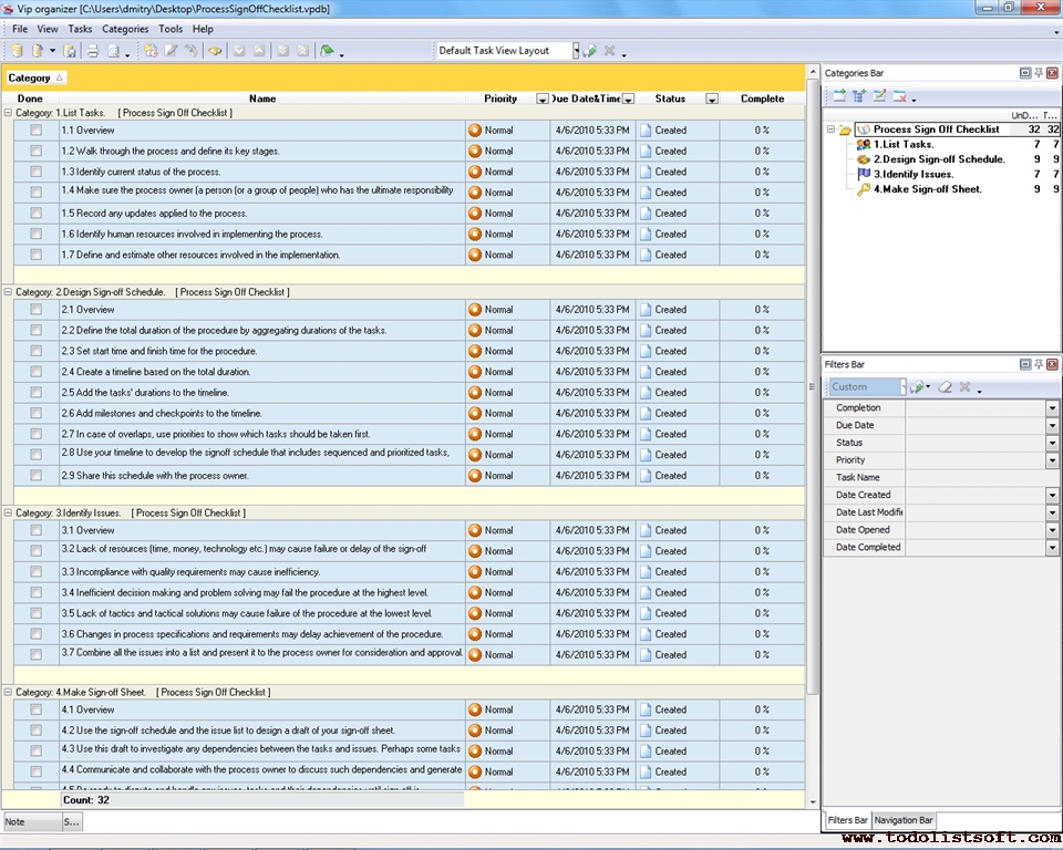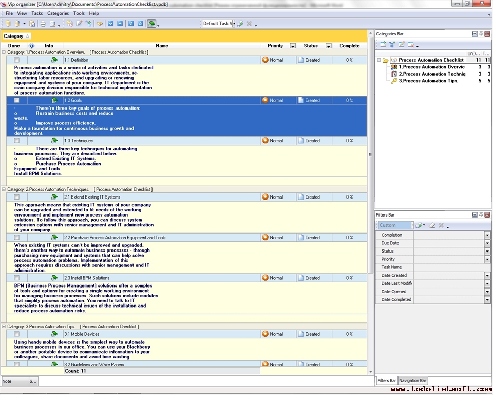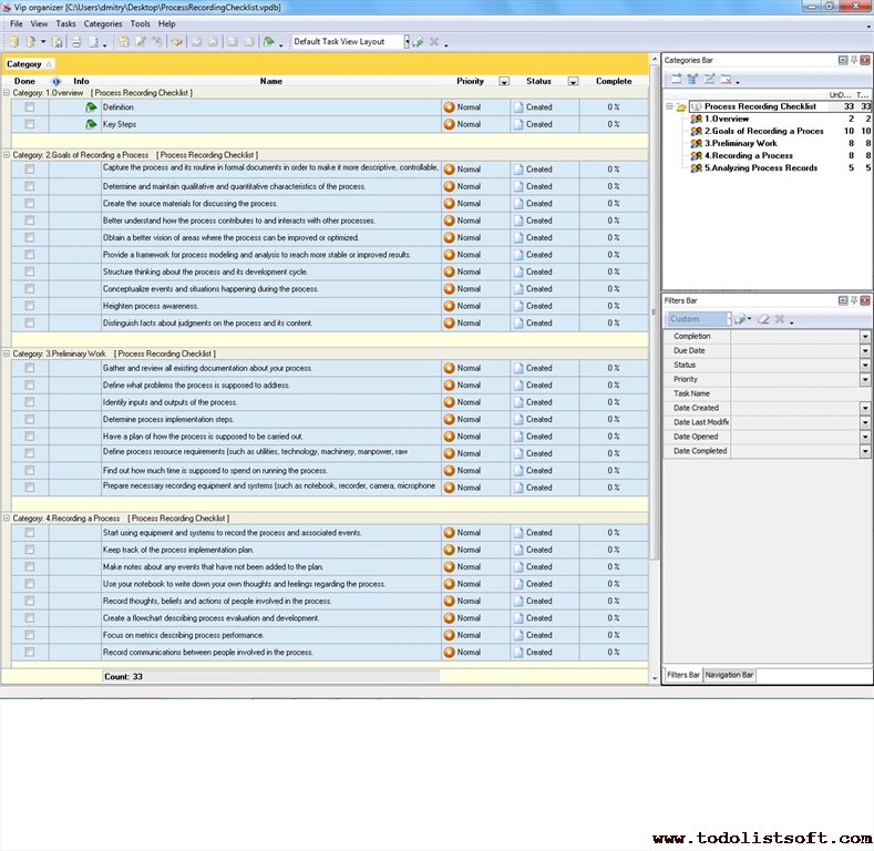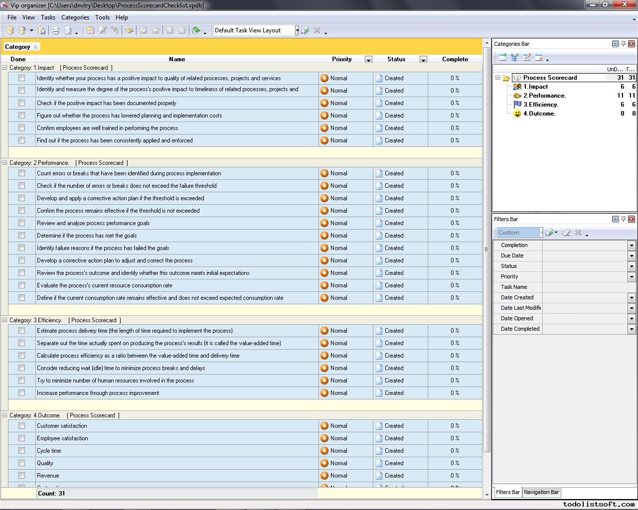 This Process Workflow Checklist describes three steps for performing a typical process workflow. It will be helpful for various specialists involved in process planning and management. The checklist can be uploaded into VIP Organizer which is a task management program. Process Workflow Checklist
