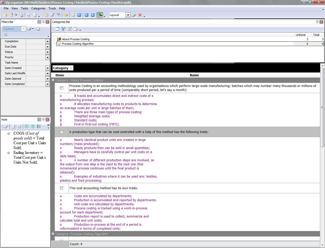 This Process Costing Checklist is created to be helpful to all those executives who wish to apply this costs accounting methodology in their production control efforts. With a help of this checklist you can follow the facts and algorithm of Process Costing – a technique which suits the needs of a large-scale manufacturing.  Process Costing Checklist