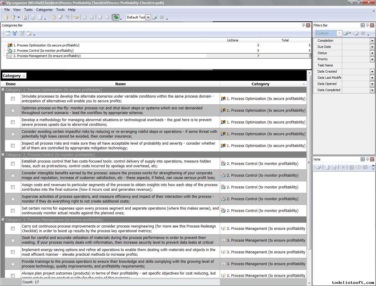 Process Profitability Checklist is created for managers who wish to ensure the best possible level of profitability for their business processes – this can be done via continuous process optimization, control and management (improvement, trainings, etc) – all these is explained in this checklist. Process Profitability Checklist