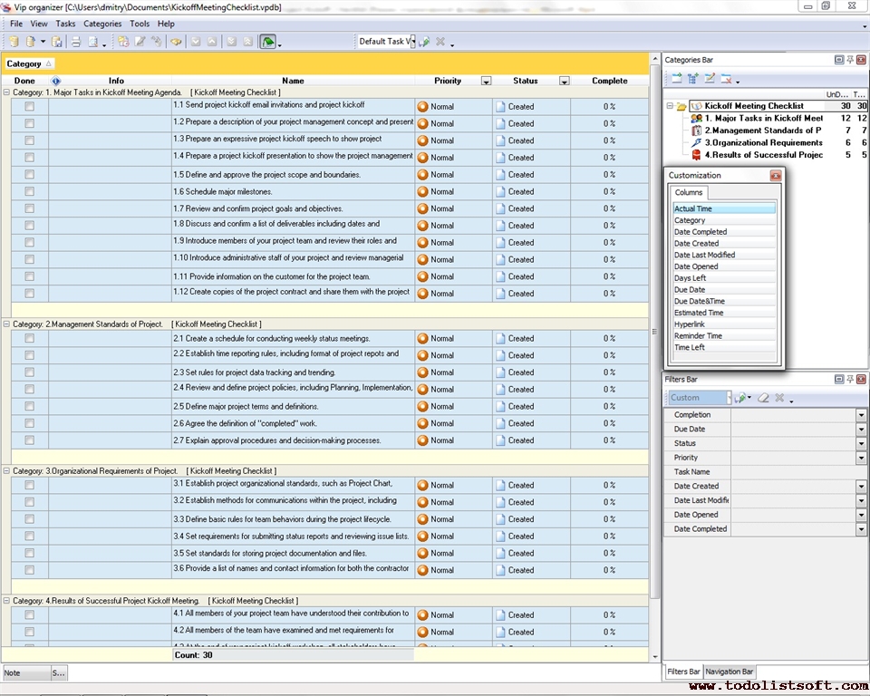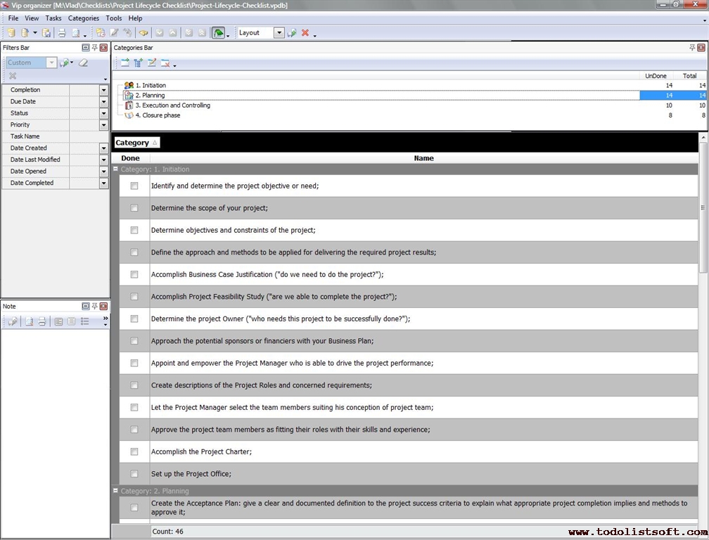 Project Management Checklists - To Do Lists for Project Management