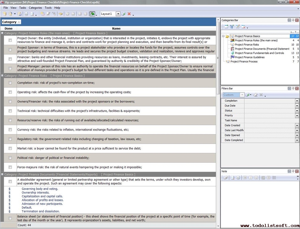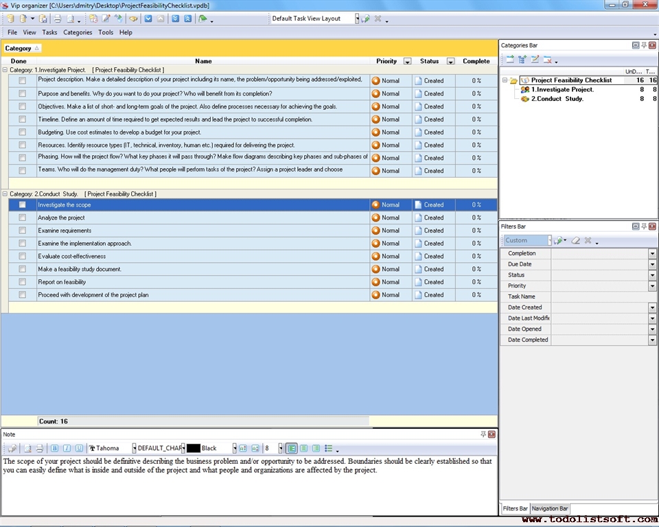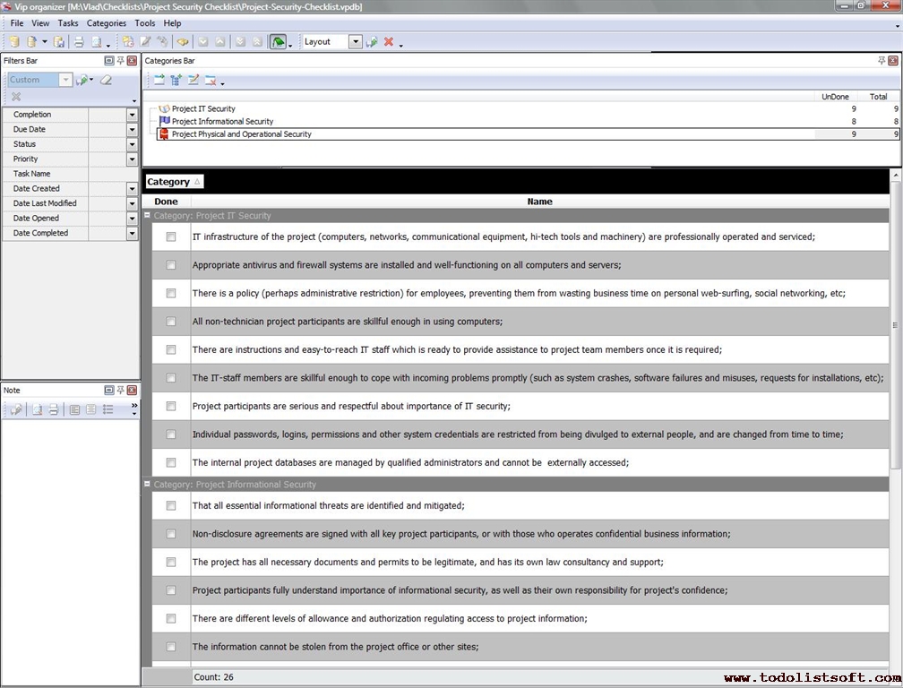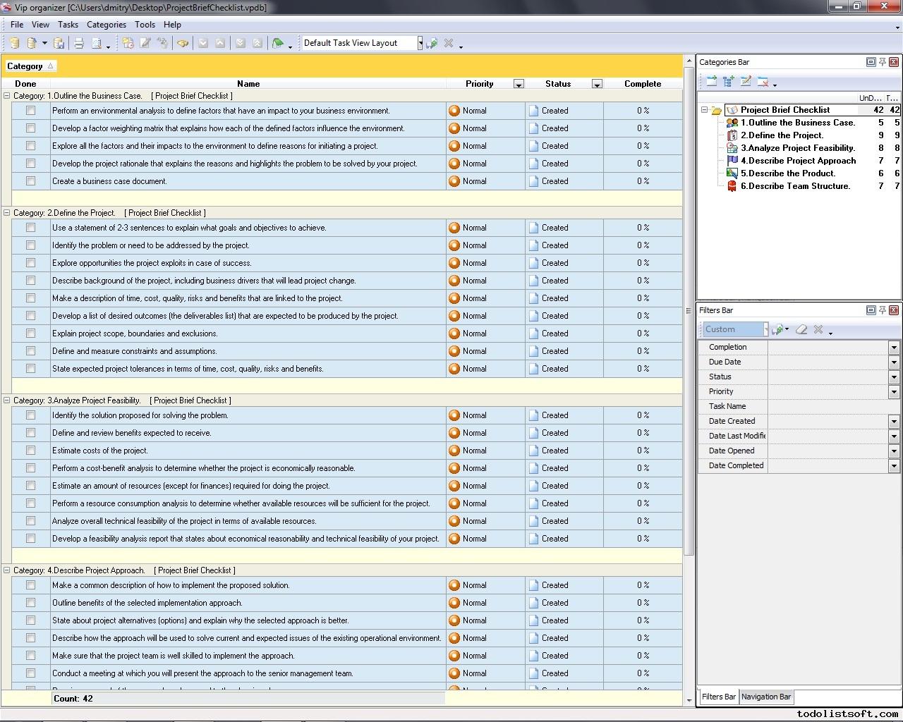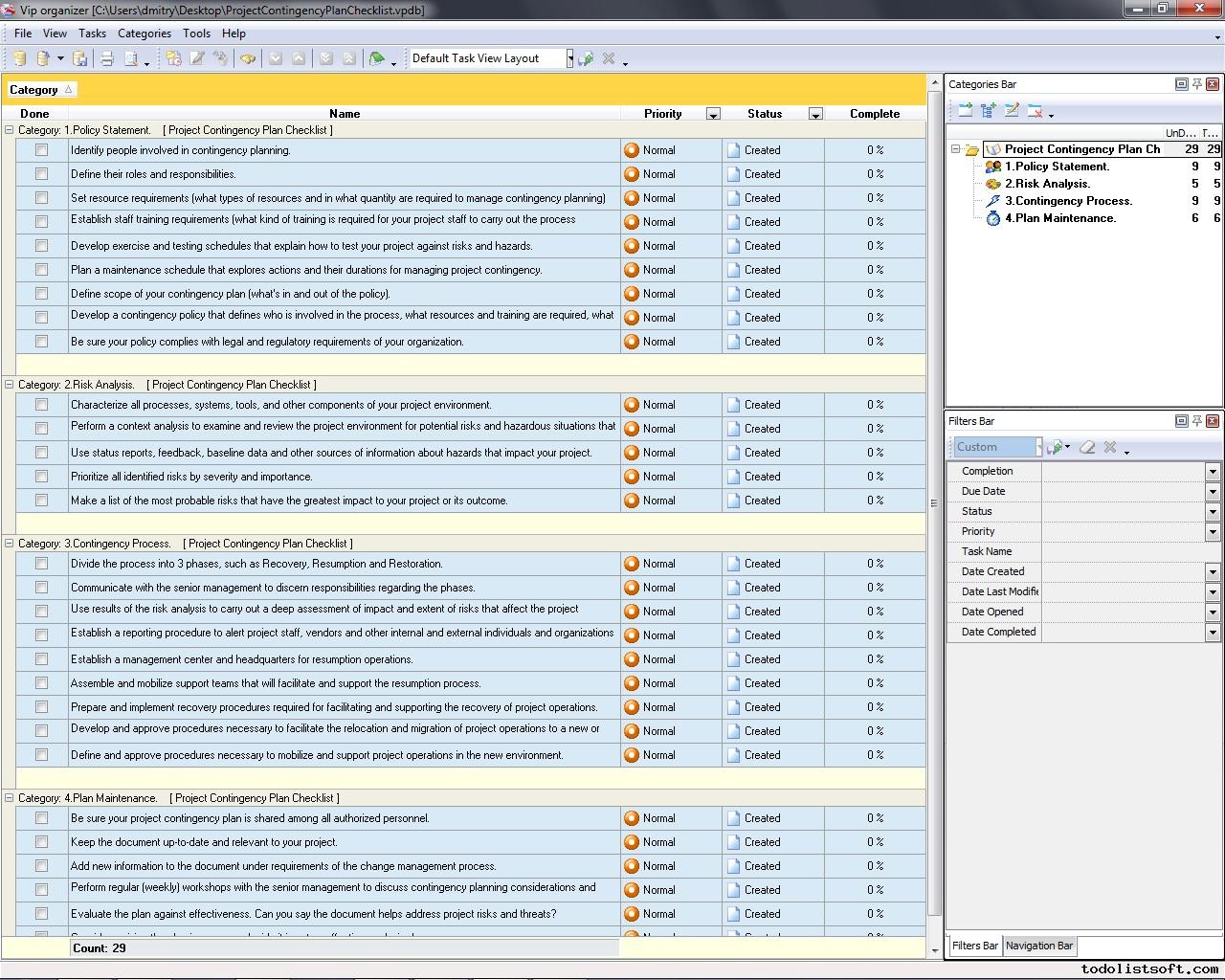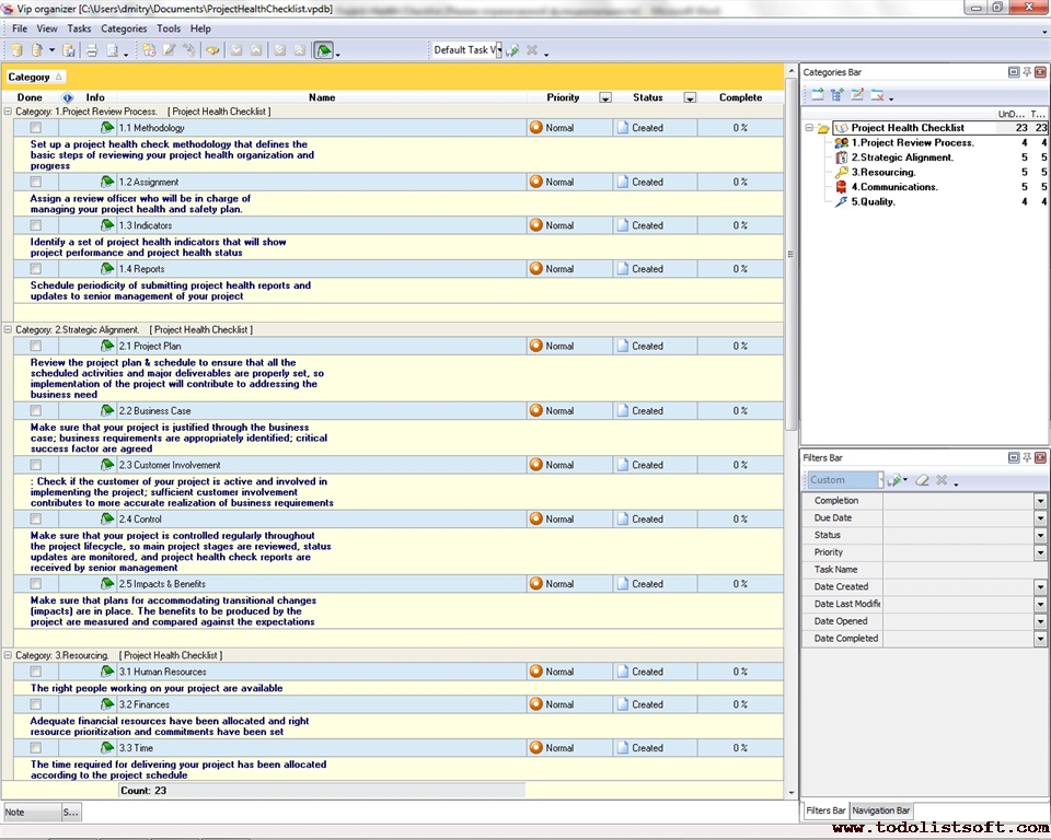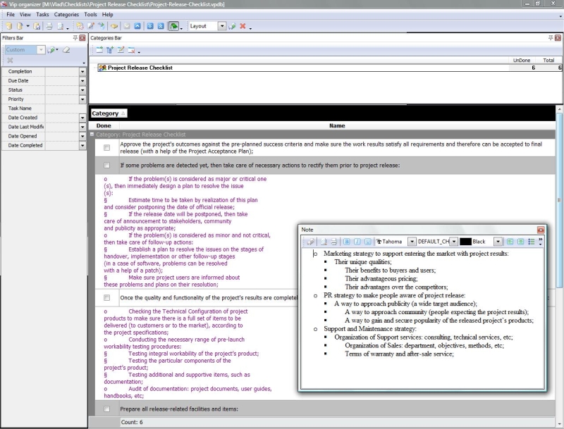 Project Viability Checklist is created for all business and project managers who wish to learn the principles to prevent their projects from losing their maximal benefits. With a help of this checklist you can correct and examine your managerial actions to know whether they secure or contradict the viability of your projects. Project Viability Checklist