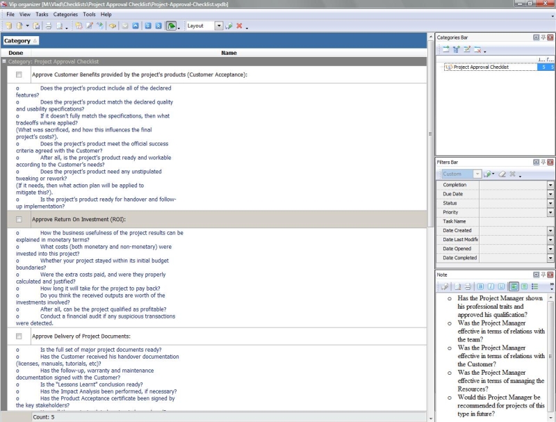 This Project Approval Checklist is created to help those managers who need to ensure that their projects satisfy certain criteria and can be approved as ones matching their goals and requirements. With a help of this checklist you will know how to approve customer benefits, return on investment, and much more.   Project Approval Checklist