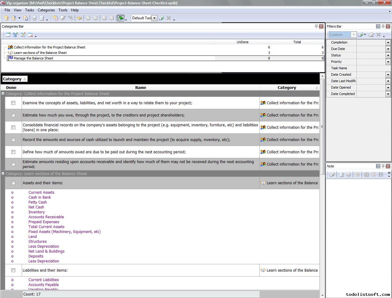 Project Balance Sheet Checklist