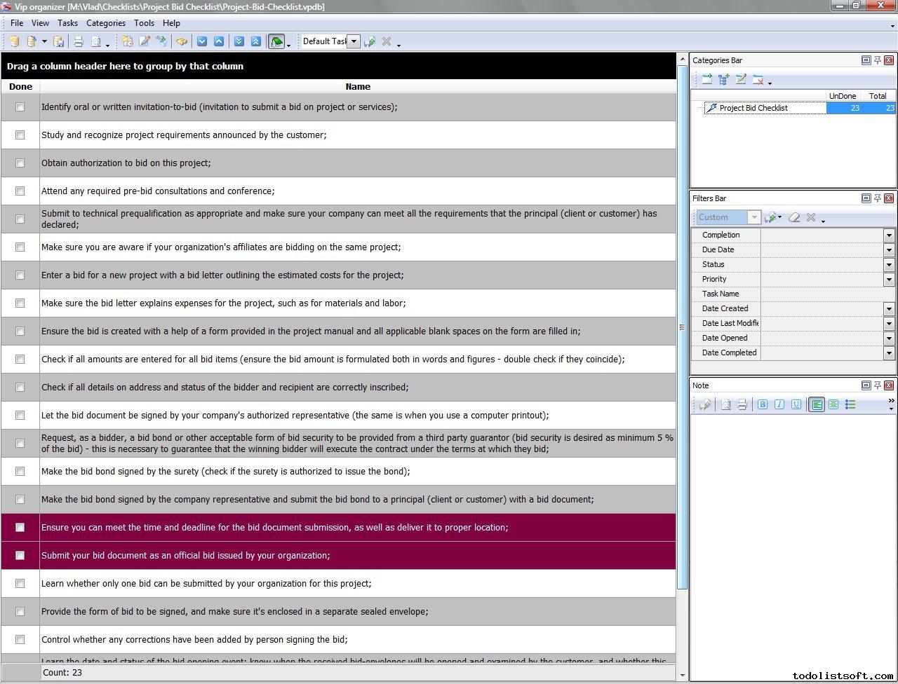 Project Bid Checklist