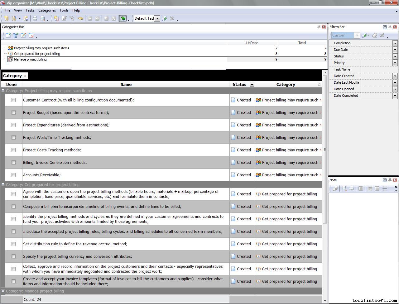Project Billing Checklist will be helpful to all organizations which are contracted to execute some projects for their customers. Any work should be billed for and paid by consumers, so this checklist will help you to organize work accounting and billing for your projects. Project Billing Checklist