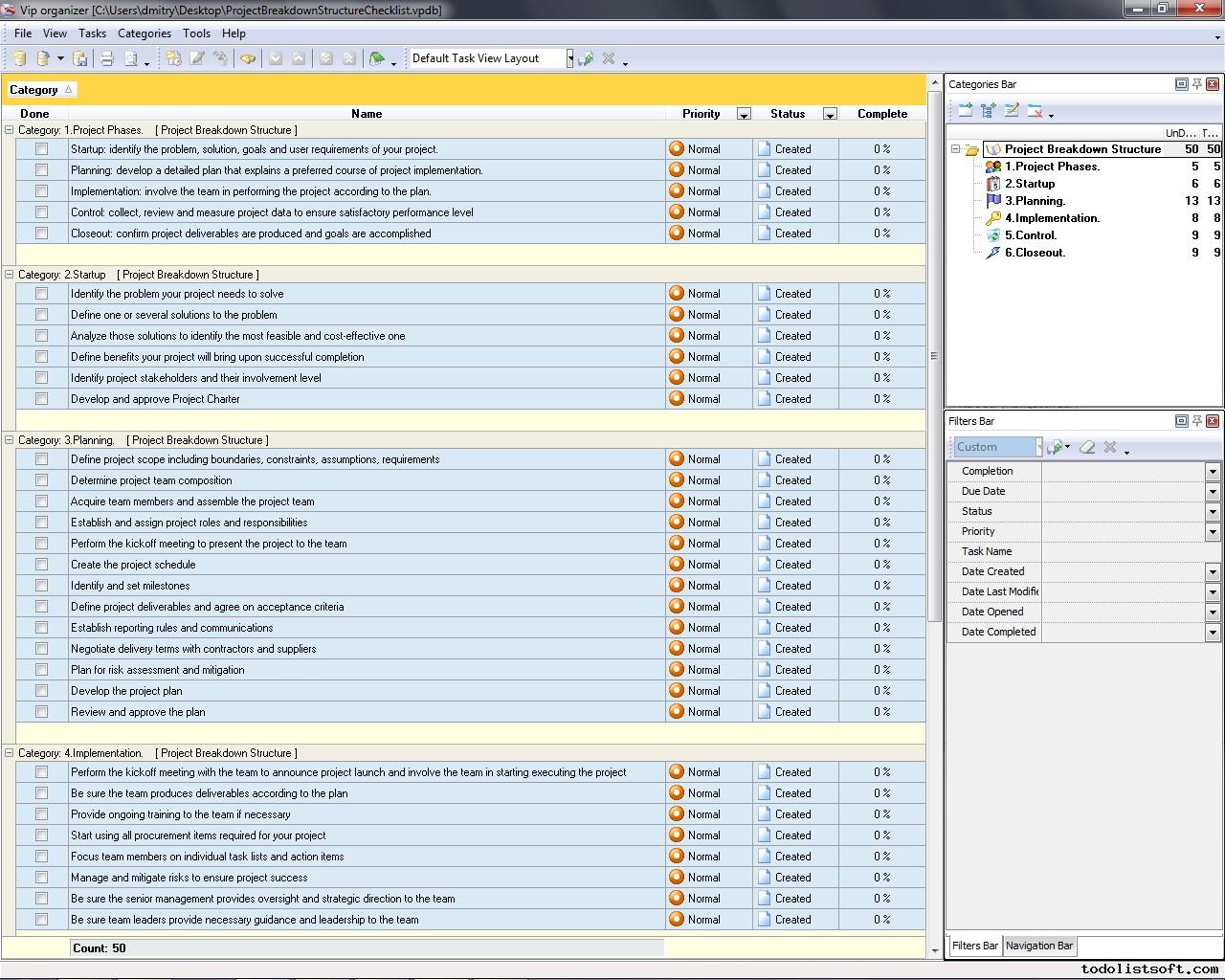 Project Breakdown Structure Checklist