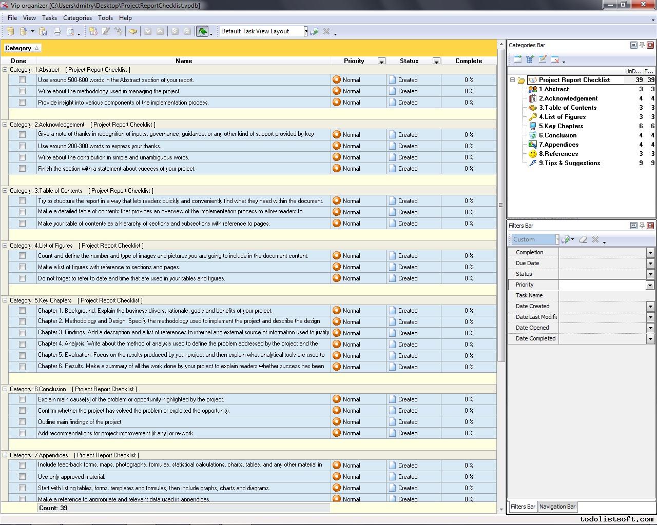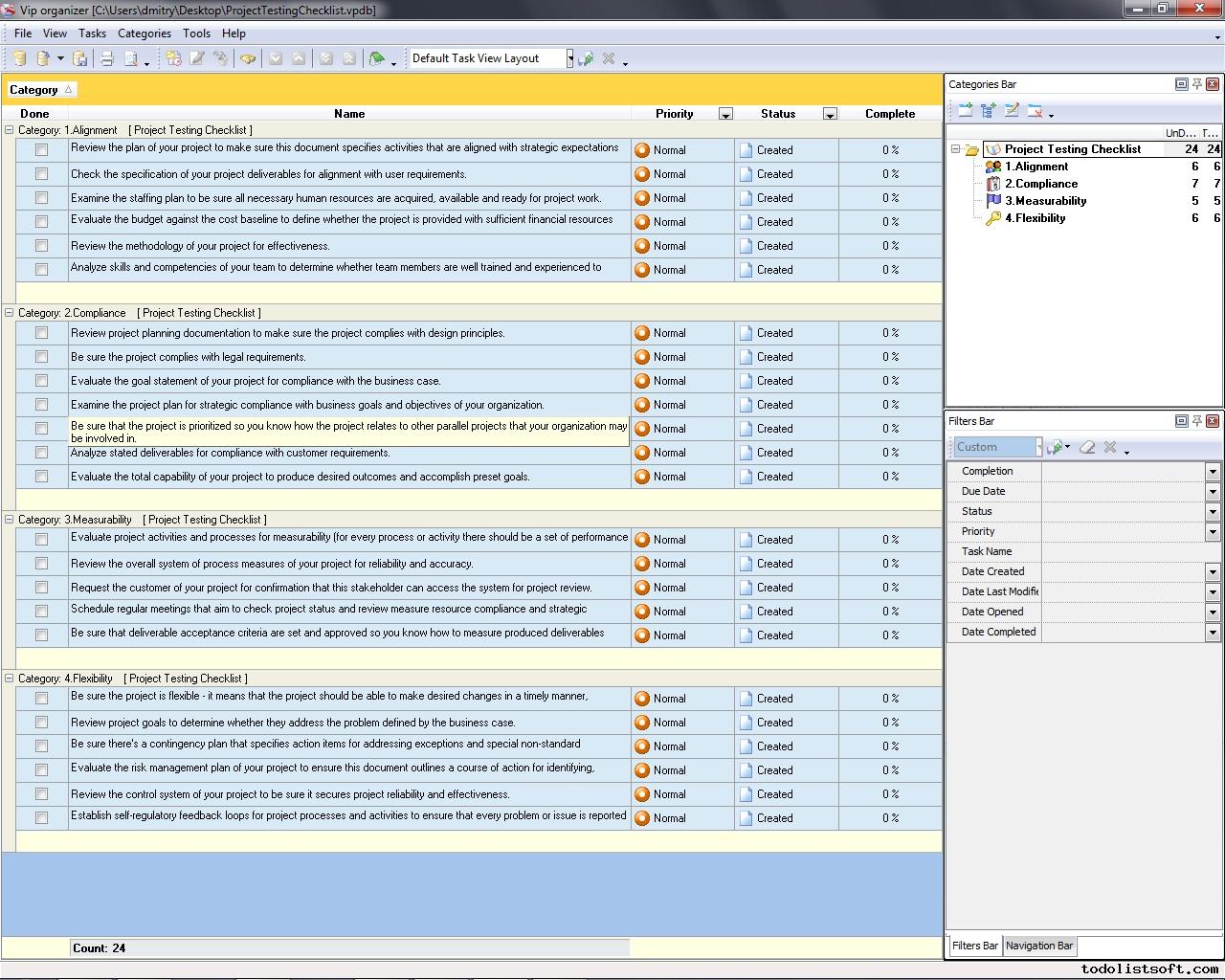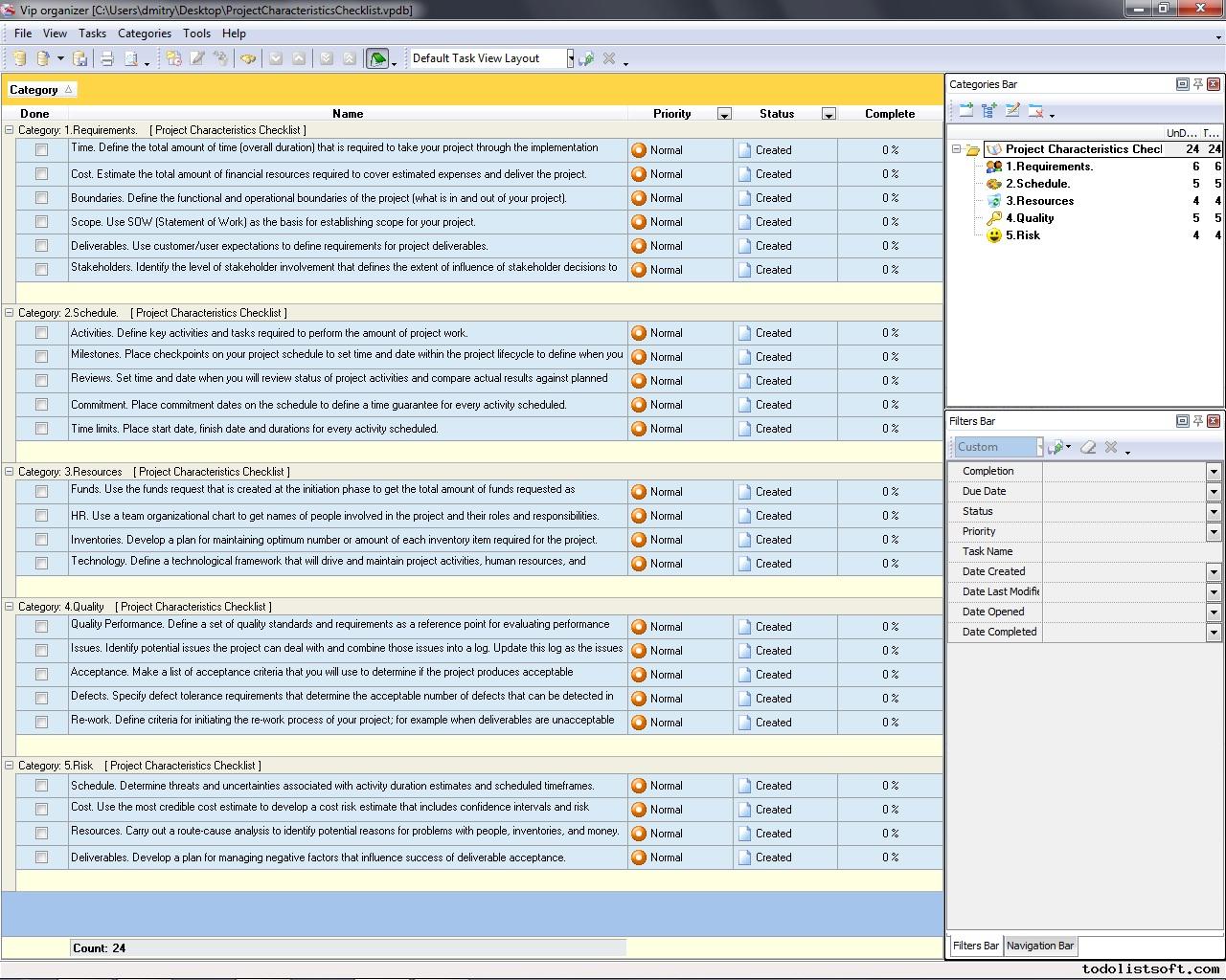 Sample Project Checklist
