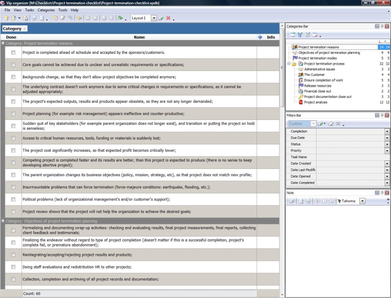 This project termination checklist will help you to close-out your project correctly. The project termination phase is extremely important as every project (doesn’t matter if completed successfully or failed) should be properly closed. This project termination checklist embraces many aspects of effective project termination, comprising its reasons, modes, and project termination plan for the actual process. Project termination checklist