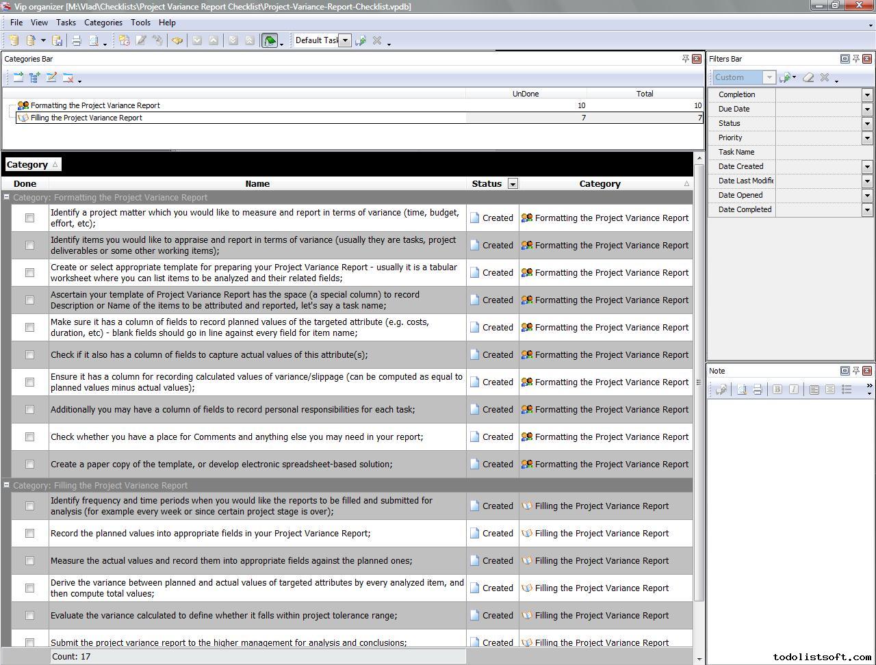 Project Variance Report Checklist