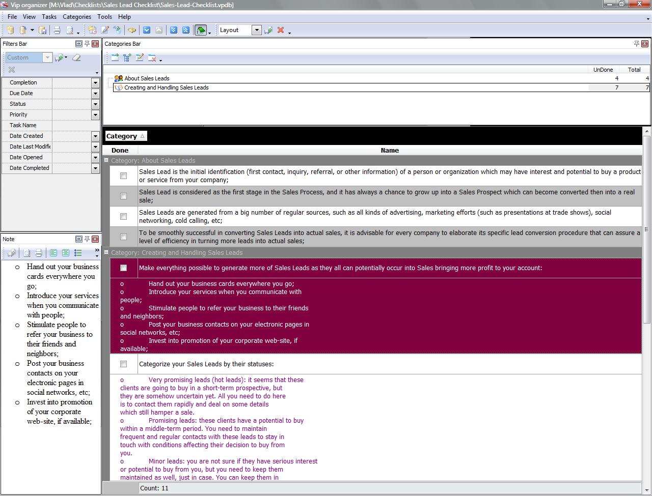 This Sales Lead Checklist is created to be helpful for all those people who manage sales in their companies and need more information on how their Sales Leads can be increasingly generated and systematically converted into real sales.