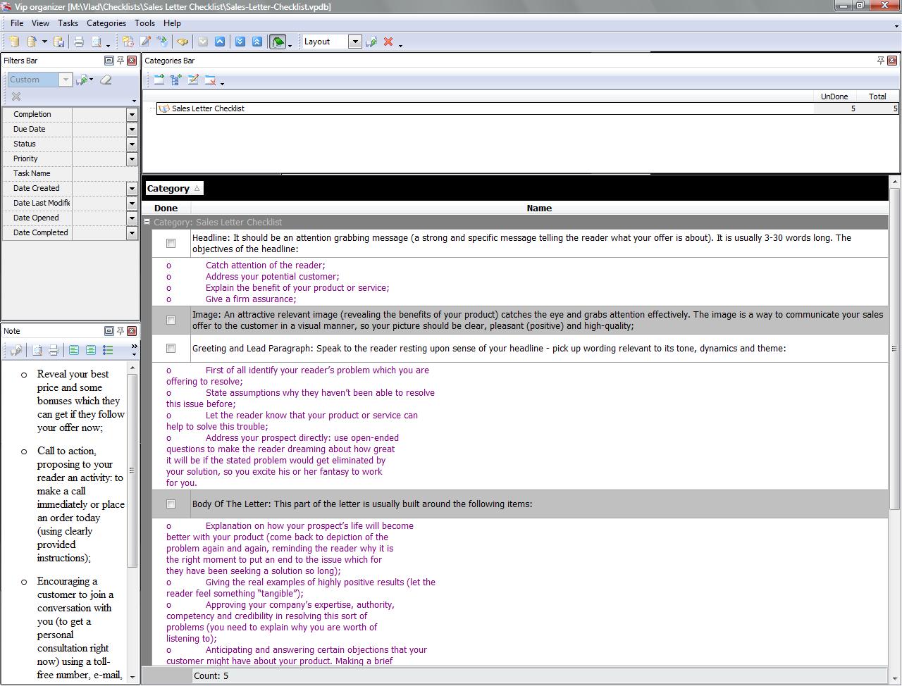 This Sales Letter Checklist will be helpful to all salespeople who want to create a good business letter that can reach the minds and hearts of their prospects. In this checklist you will find the major sections of a sales letter, including some useful suggestions and tips.