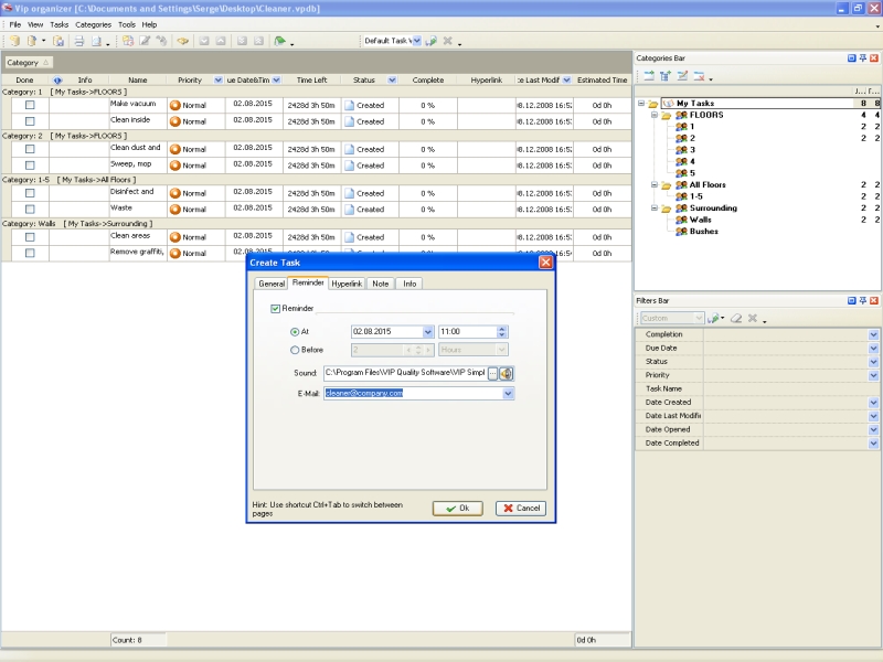 • VIP Task Manager. The best solution for cleaning services agencies is VIP Task Manager which features a centralized database each employee can enter and update his tasks in real time, and a supervisor will be immediately notified of any change with automatic notification system.