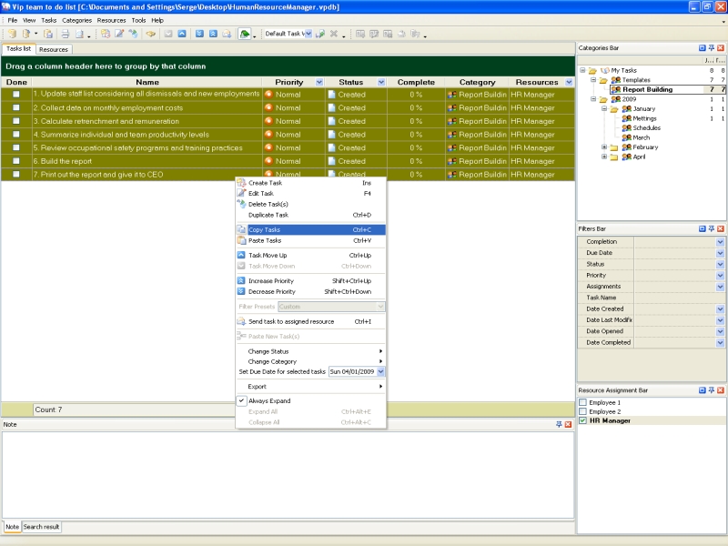 ●VIP Team To Do List. If activity of HR department supposes that tasks and jobs should be assigned to a group of employee within the department, VIP Team To Do List allows assigning tasks to the employees and send them their tasks by email or give them a printable to do list.