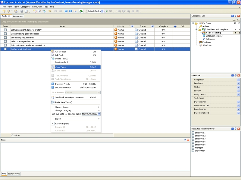• VIP Task Manager. The best solution for training providers which offer training services and extension courses will be VIP Task Manager which features a centralized database each employee can enter and update his tasks in real time, and a supervisor will be immediately notified of any change with automatic notification system.