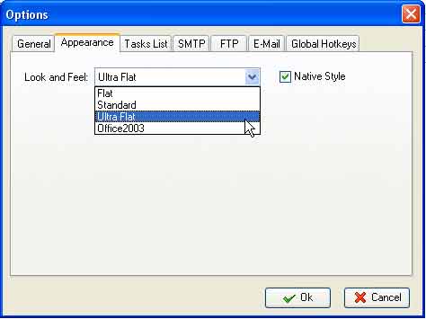 Selecting this tab from the Options menu you can change program appearance to enjoy all benefits of the Windows Native style. You just need to check the Native style option in dialog and all program objects will change their visual style in accordance with the chosen option.