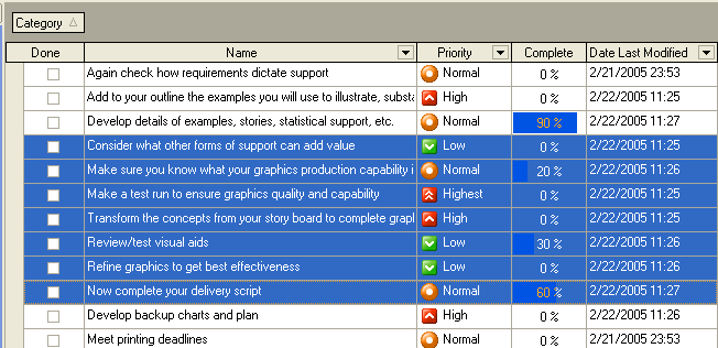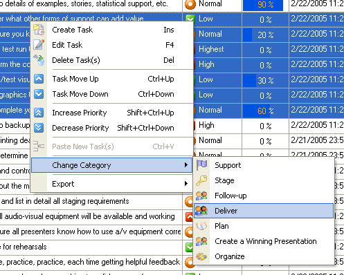 An alternative to Step 2 . Drag & Drop the selected tasks on required (the necessary) category on the Categories Bar.