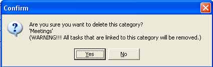 Warning: If you delete a category all the tasks linked to that category will also be deleted.