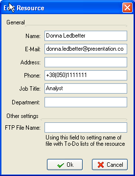 2. Click the button on the toolbar, or select the Resources \ Edit Resource menu item, alternatively press the Enter key on your keyboard or double-click the selected task.