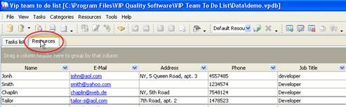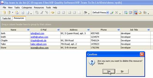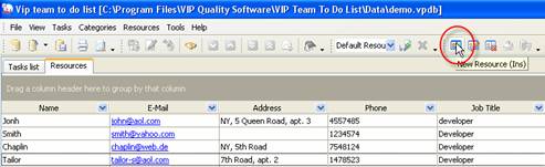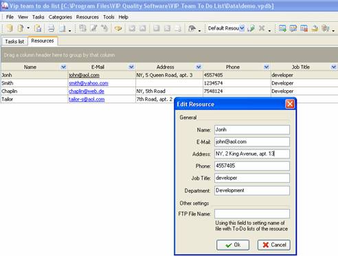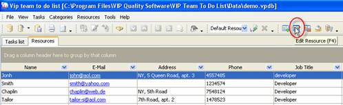 Resource information may be changed, for example resource John changed his address. To edit existing resource information click on ‘Edit Resource’ button on Resources toolbar, press ‘F4’ key or double click on required resource. Enter required changes and click ‘Ok’.