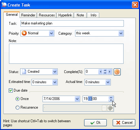 If you want to schedule a task you plan to do once you should activate Due Date box and select radio button Once.