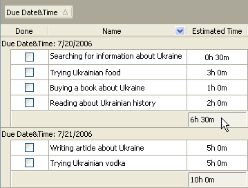 If you don't want to plan more than you can do and then get stressed because of procrastination and overload, you can allocate your workload. First you should group your tasks by their due date and then display the sum of their estimated time for each date. |