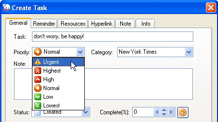 When you create a new task, it has “Normal” priority by default. You can set any of six priority statuses available: “Lowest”, “Low”, “Normal”, “High”, “Highest” and “Urgent” while creating a task.