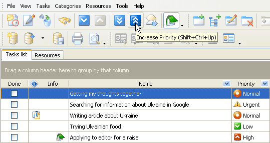 After setting priority of all your tasks you can sort them by clicking on the headline of Priority column to highlight the most important things from the list. |