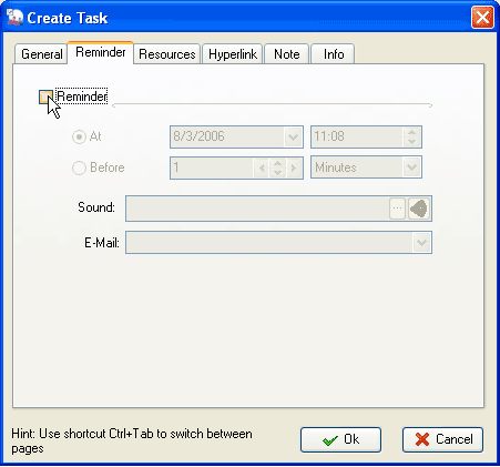 Select Reminder tab