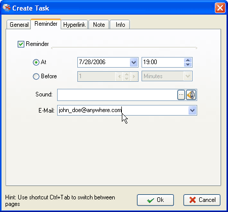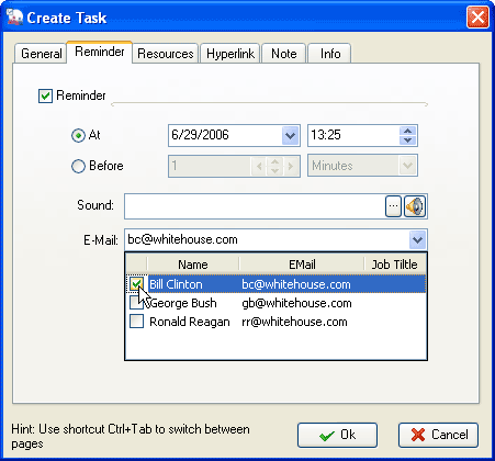 If you use VIP Simple To Do List or VIP Organizer, you should enter emails, while in VIP Team To Do List you can select them from Resource drop down list. Don’t forget to set SMTP (Tools -> Options) beforehand.